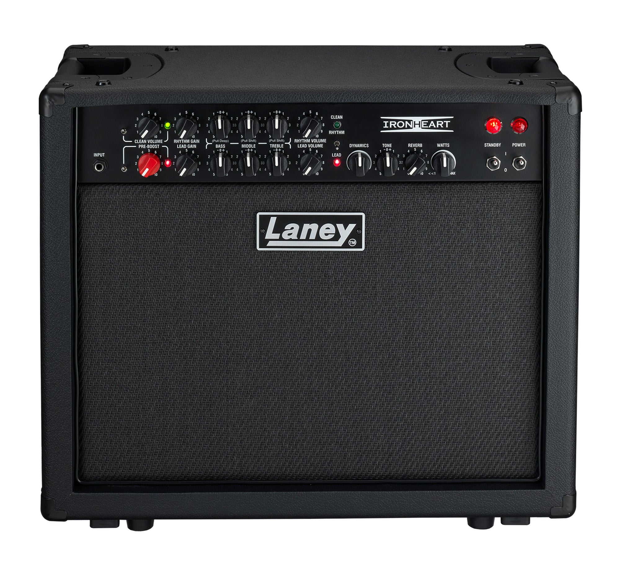 - préampli à lampes (4 x ECC83), 3 canaux: Clean, Rhythm et Lead, système Vari-Watt,