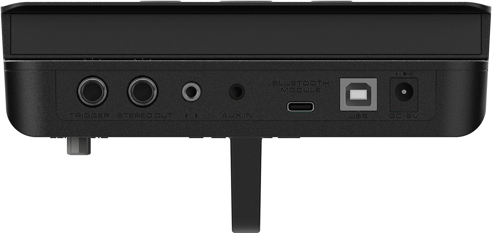 Sorties : sortie casque pour une pratique silencieuse, sortie principale pour brancher la batterie sur un ampli ou un système de sonorisation.