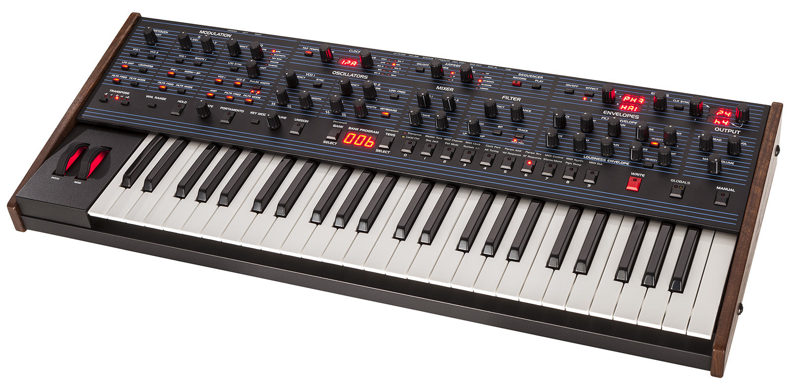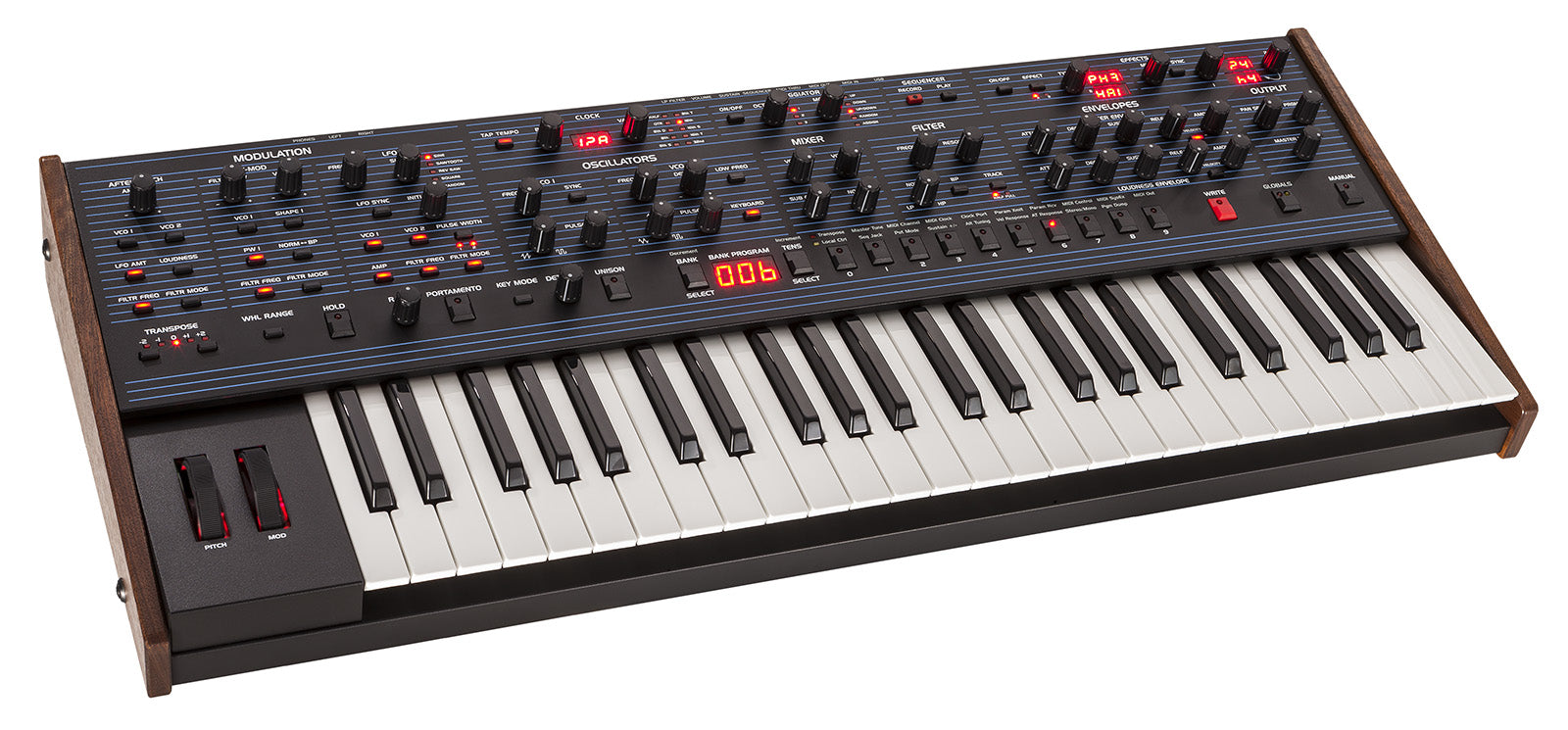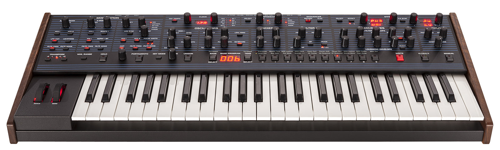 L'OB-6® est le résultat de la collaboration unique de Dave Smith et Tom Oberheim, deux des concepteurs les plus influents de l'histoire des synthétiseurs polyphoniques. L'OB-6 reprend le son classique et puissant de Tom Oberheim — grâce à ses véritables oscillateurs, filtre à 2 pôles et amplificateurs contrôlés en tension — et y ajoute des améliorations telles que des effets de qualité studio, un step-séquenceur polyphonique, un arpégiateur, etc. Aucun autre synthétiseur polyphonique analogique moderne ne peut se vanter d'avoir un tel pedigree ni une signature sonore aussi massive et frontale.